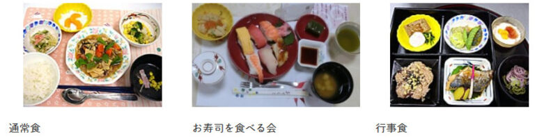 ご利用者の皆さんの意見を取り入れながら、栄養バランスが良く、季節感を盛り込んだ献立を作り、楽しんでお食事をしていただけるように心がけています。年間を通して行事食や選択食、外食などにも取り組んでおります。
