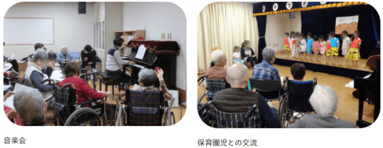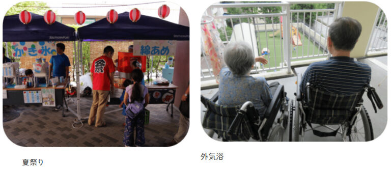 各ユニット毎に花見、外出等のアクティビティを企画いたしております。また、ひな祭りや夏祭り、敬老会など四季を通じて多くの利用者が参加して戴ける行事もご用意しております。